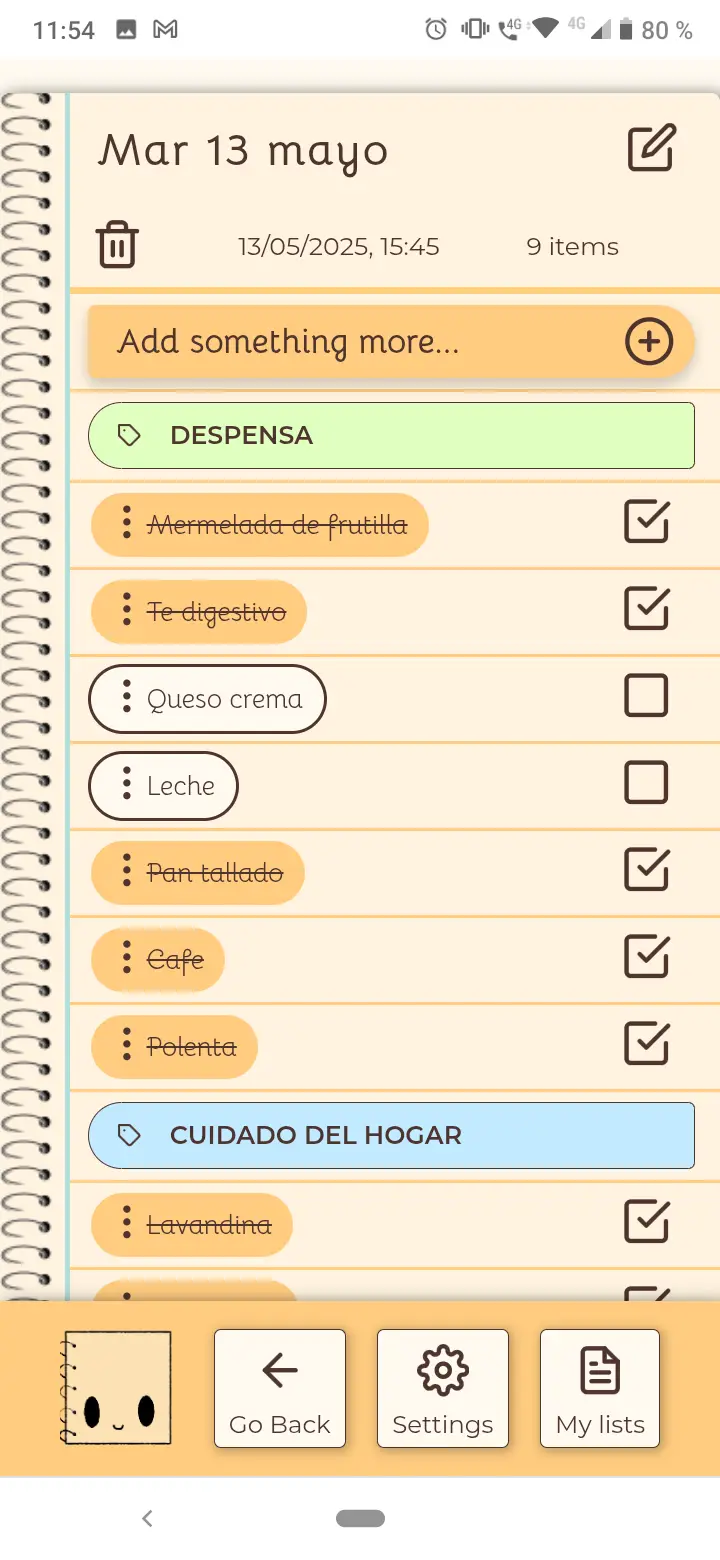 Gestiona y crea lista de compras y/o tareas pendientes de forma privada.