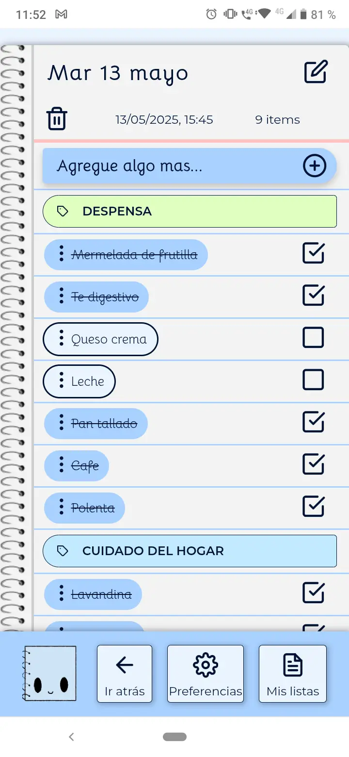 Gestiona y crea lista de compras y/o tareas pendientes de forma privada.