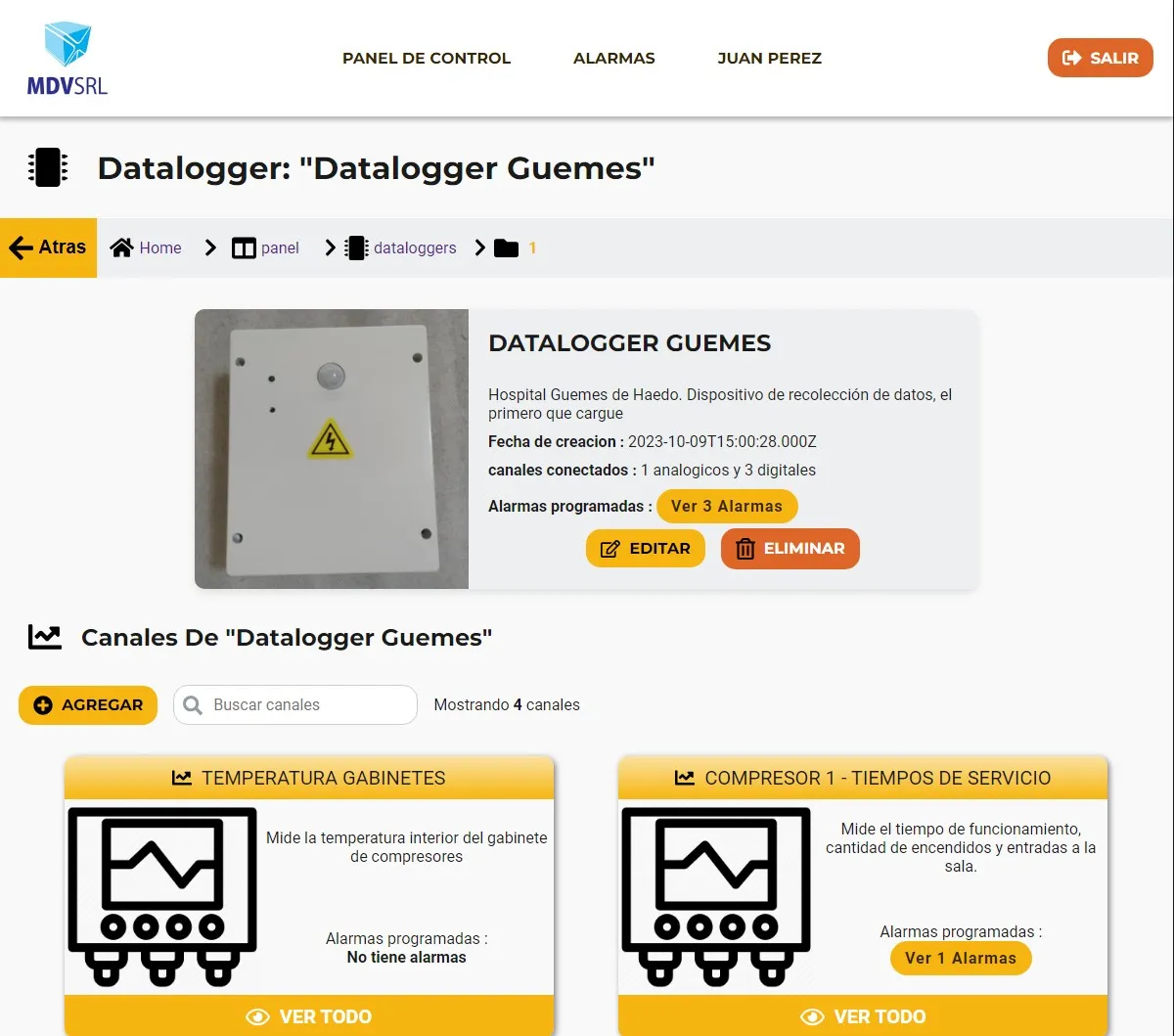 Esta aplicación, con una arquitectura SPA (Single Page Application) y un backend API RESTful, está diseñada para la administración de usuarios, equipos electrónicos y datos de funcionamiento de equipos electromecánicos. Los datos se monitorean 24/7 y el sistema notifica cambios críticos a los responsables de cada área.